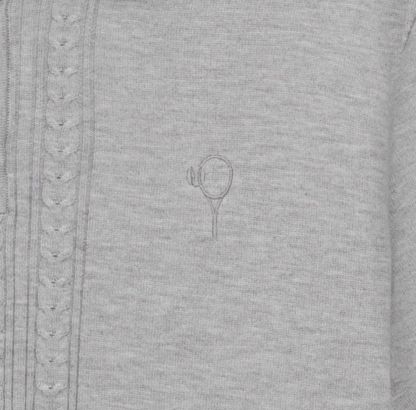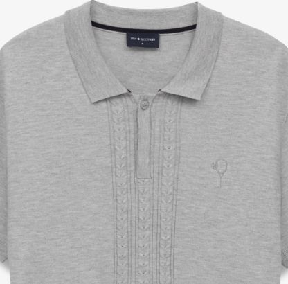 Koszulka polo z limitowanej kolekcji DTW TENNIS CLUB o subtelnym splocie warkoczowym i klasycznym zapięciu na guziki przy dekolcie. Wykonana z miękkiej, przewiewnej dzianiny bazującej na wiskozie, zapewnia wyjątkowy komfort noszenia. Na piersi ozdobiona haftem z logo kolekcji. Dostępna w dwóch stonowanych wersjach kolorystycznych: szarej i beżowej.