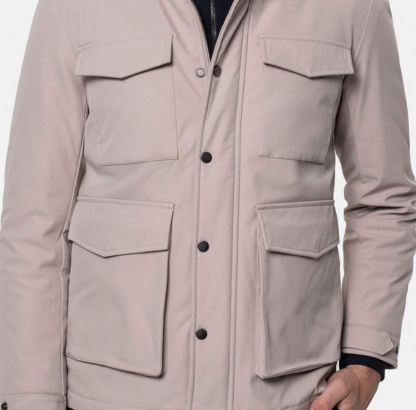 Nowoczesna kurtka o miejskim charakterze, zaprojektowana dla mężczyzn ceniących praktyczne rozwiązania, wygodę i ponadczasowy styl. Uszyta z lekkiej, wiatroszczelnej tkaniny w subtelnym beżowym odcieniu, świetnie sprawdzi się w okresie przejściowym, zapewniając skuteczną ochronę przed chłodem i wiatrem. Cztery pojemne kieszenie z patkami nadają całości wyrazisty wygląd i umożliwiają wygodne przechowywanie drobiazgów. Stonowana barwa pozwala łatwo łączyć ją z innymi elementami garderoby. Zestawiona z koszulą, chinosami i trzewikami będzie idealnym uzupełnieniem codziennego outfitu do pracy, natomiast z jeansami i sportowym obuwiem stworzy swobodny, weekendowy zestaw.