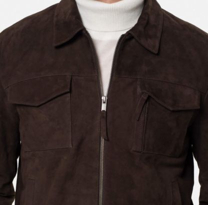 Zamszowa kurtka w odcieniu głębokiego brązu to klasyczny element męskiej garderoby, który łączy w sobie elegancję i swobodę. W połączeniu z białym golfem i jasnymi spodniami tworzy wyrazisty kontrast, podkreślający luksusowy charakter materiału. Taka stylizacja świetnie sprawdza się w chłodniejsze dni, oferując zarówno komfort, jak i ponadczasowy wygląd. Spodnie w odcieniu ecru rozjaśniają całość i nadają jej lekkości, a gładki golf dodaje subtelnej elegancji. Kurtka może być także bazą dla stylizacji smart casual – w zestawieniu z koszulą, chinosami i skórzanymi butami zyskuje bardziej formalny ton. To propozycja dla mężczyzny ceniącego wysokiej jakości materiały, dopracowane detale i styl, który pozostaje aktualny niezależnie od sezonu.