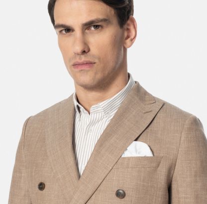 Dwurzędowa marynarka z kolekcji RECMAN PREMIUM to kwintesencja letniej elegancji. Wykonana z wysokiej jakości naturalnych materiałów, wykończony 100% wiskozową podszewką, zapewnia przewiewność, lekkość oraz wyjątkowy komfort noszenia. Jasna kolorystyka sprawia, że w połączeniu z białą koszulą i loafersami doskonale sprawdzi się w stylizacjach na wyjątkowe okazje sezonu wiosenno-letniego. Marynarka to również stylowa propozycja na co dzień. W połączeniu z gładkim t-shirtem i sneakersami stworzy idealny zestaw do pracy lub na wyjścia ze znajomymi.
