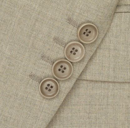Marynarka została wykończona naturalnymi guzikami z orzecha.
