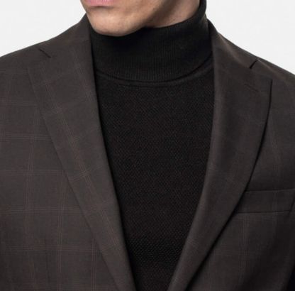 Brązowa marynarka w kratę to wszechstronna propozycja, która świetnie sprawdzi się w sezonie jesień-zima, łącząc klasykę z nutą nowoczesności. Marynarkę można zestawić z gładkim golfem lub cienkim swetrem w neutralnych lub ciepłych odcieniach, takich jak beż, krem, granat czy butelkowa zieleń, co nada stylizacji elegancki, a jednocześnie przytulny charakter. Dla bardziej formalnego wyglądu warto dobrać klasyczną koszulę — białą lub błękitną — i uzupełnić zestaw krawatem oraz skórzanymi oksfordami lub brogsami. W wersji smart casual marynarkę można nosić bez krawata, z koszulą w delikatny wzór lub jednolitym t-shirtem, a całość uzupełnić loafersami lub minimalistycznymi sneakersami, co doda stylizacji lekkości i miejskiego luzu.