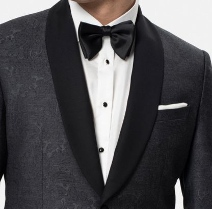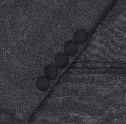 Grafitowa marynarka żakardowa to wyjątkowy akcent stylizacji, dodający jej elegancji i wyrafinowania. Zestawiona z klasycznymi czarnymi spodniami na kant, białą koszulą z czarnymi guzikami jubilerskimi, czarną muchą, eleganckimi spinkami do mankietów i lakierkami, to kwintesencja eleganckiego stroju, idealnego na najbardziej uroczyste okazje, takie jak śluby, gale czy bankiety. Dla panów preferujących bardziej awangardowe połączenia, proponujemy zestawienie marynarki z czarną koszulą i czarnymi skórzanymi loafersami, tworząc świeży i modny look.