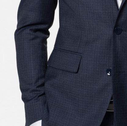 Elegancka marynarka o wyrazistej, drobno prążkowanej strukturze, która dodaje tkaninie głębi i podkreśla jej szlachetny charakter. Dzięki dodatkowi wełny model prezentuje się niezwykle estetycznie, a jednocześnie zapewnia komfort noszenia przez cały dzień. W zestawieniu ze spodniami do kompletu, koszulą i krawatem marynarka tworzy stylizację idealną na formalne spotkania, uroczystości czy ważne wydarzenia biznesowe. W bardziej swobodnej odsłonie świetnie prezentuje się z gładkim golfem, chinosami oraz sztybletami, nadając stylizacji lekkości i nowoczesnego charakteru. Stonowany odcień granatu sprawia, że model z łatwością komponuje się zarówno z klasycznymi kolorami, jak i z cieplejszymi, jesiennymi tonami.