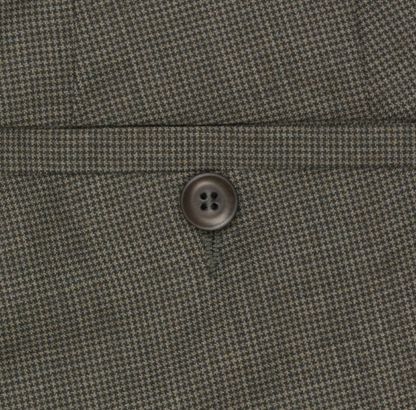 Tył spodni wykończony klasycznymi, wpuszczonymi kieszeniami z guzikiem.